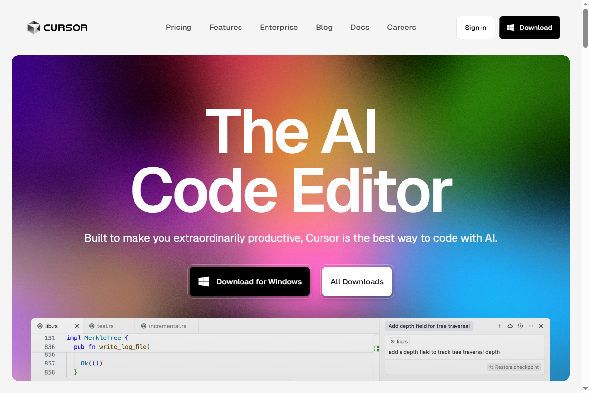 Cursor ist ein KI-gestützter Code-Editor, der auf VS Code basiert und Funktionen wie KI-Chat, Verständnis des Codebases, Bearbeitung mehrerer Dateien und Inline-Generierung bietet. Mit den Modellen GPT-4 und Claude ermöglicht er Programmierung in natürlicher Sprache, Refactoring-Vorschläge, Fehlerbehebungen und Dokumentationsgenerierung, wodurch die Entwicklung mit kontextbewusster KI-Unterstützung, die direkt in den Workflow integriert ist, beschleunigt wird.
